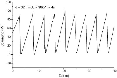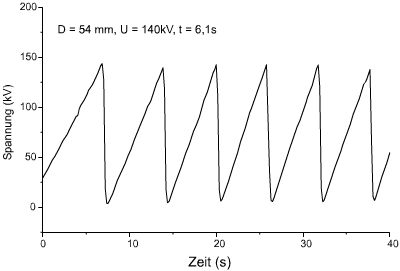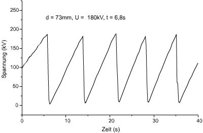 Eine deutlich höhere Ladespannung, jetzt 60kV, wird durch Überschläge