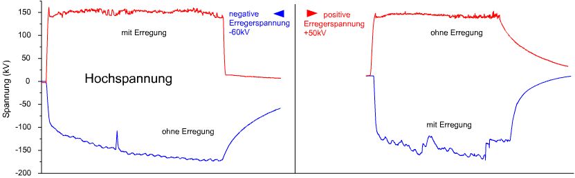 wurde eine einstellbare Hochspannung (aus dem Erregernetzteil) an die Kugel des