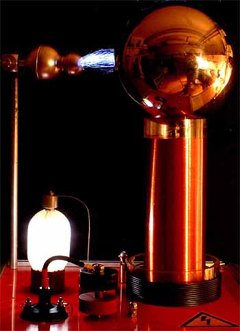 des Teslatrafos entladen und an der Sekundärwicklung der Hochspannungsimpuls